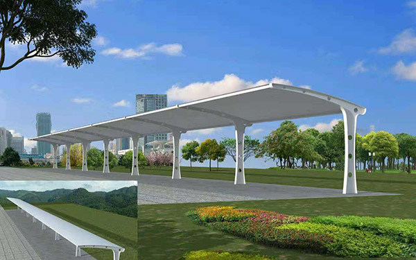 钢膜结构车棚有哪些特点?它是一种空间结构形式,由各种高强度膜材料和钢筋构件,形成一定的空间形状,作为覆盖结构,强度高、耐久性好,造型优美,设计空间大。...