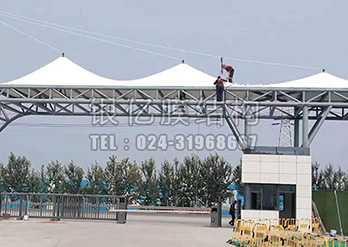 门头膜结构低成本,钢筋混凝土顶棚造价普遍偏高,维护费用大,而膜结构顶棚有工厂直接加工完成,造价低,维护费用小,与钢筋混凝土顶棚产生了明显的优势