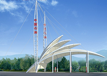 自助加油站膜结构,一般是指安装在加油站的膜结构顶棚,膜结构顶棚因其自重轻,具有良好的受力特点,所以成为大跨度空间结构的主要形式之一