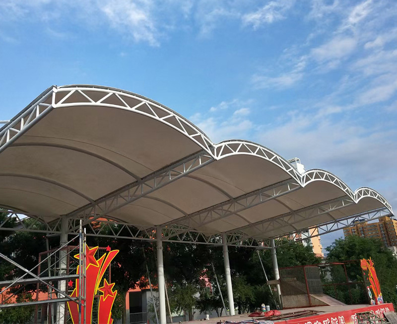 钢膜结构车棚有哪些特点?它是一种空间结构形式,由各种高强度膜材料和钢筋构件,形成一定的空间形状,作为覆盖结构,强度高、耐久性好,造型优美,设计空间大。...
